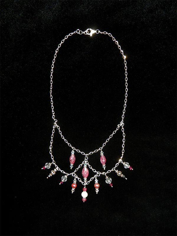 Rubies and Ice Necklace Components: ruby, pearl, crystals, sterling CURRENTLY UNAVAILABLE - "Similar to" may be commissioned. length: 16'' · weight: .65 oz.