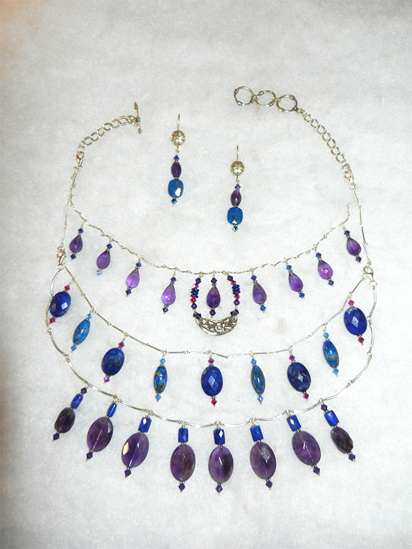 amethyst, lapis, crystals, Silver Art Clay, sterling and Bali silver