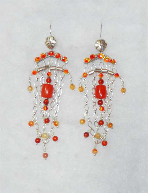 Sedona Sunset Earring Components: carnelian, sterling, Silver Art Clay, crystals $140.00 width: 1 1/4'' · length: 4'' total weight: .7 oz