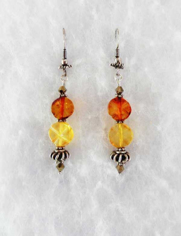 Sunflowers Earring Components: amber, crystals, sterling $25.00 width: 2 1/2'' · length: 1/2'' total weight: .2 oz